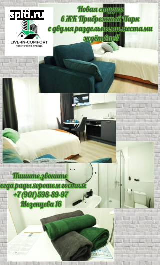 Стильная новая студия на Мезенцева 16 Уютная студия в ЖК Прибрежный Парк — отличный вариант для комфортного проживания на берегу реки Пахра с прекрасными видами и спокойной атмосферой. ???? Студия посуточно в селе ЯМ Прибрежный Парк Идеально подходит для командировок и отдыха – «Всё включено». Светлая, просторная, теплая квартира с хорошим ремонтом и двумя раздельными местами. ???? Заезд с 14.00, выезд до 12.00 ???? В квартире есть: - Стиральная машинка - Холодильник - Фен - Большой смарт телевизор - Утюг - Микроволновая печь - Чайник - Кондиционер - Укомплектованная кухня с обеденной зоной (чай, кофе, горячий шоколад, цикорий) - Двуспальная кровать с удобным матрасом и чистым постельным бельем - Раскладное большое кресло ???? Быстрый Wi-Fi ???? Гигиенические принадлежности (зубная паста, тапочки, гель для душа, свежие полотенца) ???? Чистый унитаз и душ кабина ???? Документы по запросу (чеки с QR-кодом для отчетности) ????️ Развита инфраструктура: магазины, кафе, детские сады, школы. ???? Благоустроенная территория с зонами отдыха и прогулочными дорожками. ???? Удобная транспортная доступность. ???? Экологически чистая природа рядом. ✨ Идеальное сочетание уюта, комфорта и красоты природы! Если интересует студия, уточните детали или позвоните. ???? ✈️ Расположение: - 20 минут до аэропорта Домодедово - 10 минут до ж/д Ленинский в пешей доступности - 10 минут до города Домодедово на маршрутке ???? Важно: - Сумма залога может меняться (в зависимости от возраста и количества гостей, срока проживания) и возвращается после проверки квартиры. - Договор высылается в день заезда. Обязательное заполнение конфиденциального электронного договора через "ОкиДоки". ???? Важно: Если не родитель несовершеннолетнего ребенка или сопровождающий, нужна доверенность от родителя в рукописной форме. ???? Мы заботимся о чистоте квартиры и проводим уборку после каждого гостя. В квартирах не курят!